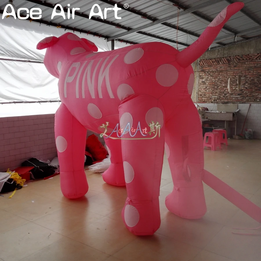 Popular fasional pink inflatable standing cartoon dog with white dots mascot for advertising/events