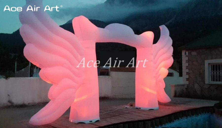 4.5m W Beautiful inflatable angel gantryinflatable glow archFly wings archway with LED light and ba