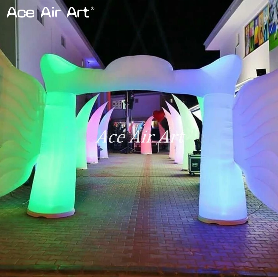 Best Seller 4.5m W Beautiful inflatable angel gantryinflatable glow archFly wings archway with LED light and ba